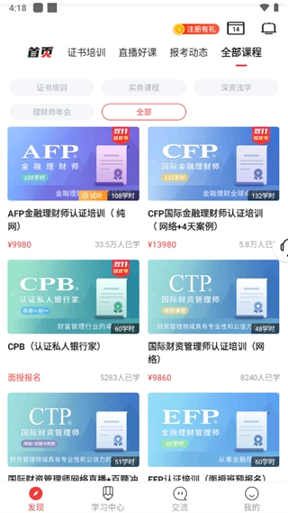1. 向用户供给丰富的证书培训内容,涵盖AFP、EFP、CFP以及CPB等多种类别。