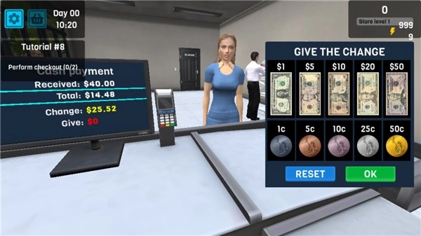 9. 当面对摆手的顾客时,执行收银操作,就能获得999元。在顾客离开之后,要把价格调回到原本的价格。