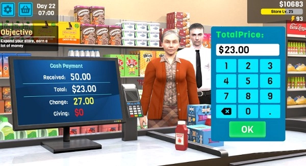 《超市管理模拟器》中文版,是一款充满趣味的经营模拟游戏。在游戏里,玩家能够体验到超真实的超市模拟经营。你需要掌管超市的大小事务,从商品的进货采购,到最终的陈列上架与销售,都得亲力亲为。游戏还为玩家准备了各类有意思的任务,让你的超市经营之旅变得更加充实有趣。喜爱这类游戏的玩家,赶紧来体验一番吧!在这里模拟开超市,你可以完整感受开超市的全流程,无论是货物上架、标记价格,还是收银操作,都能一一体验。看着顾客前来购物,然后排队结账,游戏的真实感爆棚,还原度极高。