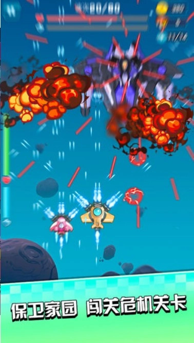 随着关卡等级的提高,游戏难度会逐步递增。这里融入了趣味十足的飞行射击玩法,同时还提供了种类繁多的酷炫外观供玩家选择。你可以收集各式各样的经典战机,并根据自己的喜好自由挑选战机类型。游戏包含海量关卡,能让你获得自由畅快的游戏体验,而且每个关卡都充满了惊险刺激的挑战。