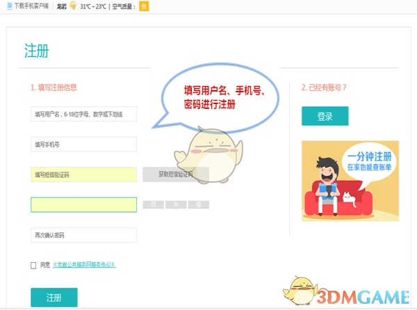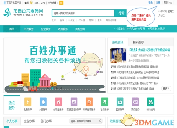一、如何注册龙岩公共服务网?