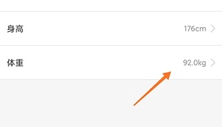 点击体重后会弹出选框,在该选框中可对体重进行修改,体重修改完成后,推荐热量也会随之发生变动。