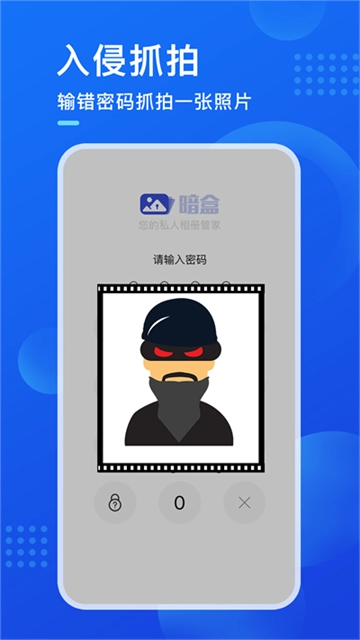 入侵抓拍功能设定为:当有人输入错误密码时,系统会自动拍摄一张照片,并将其保存至暗盒相册中。