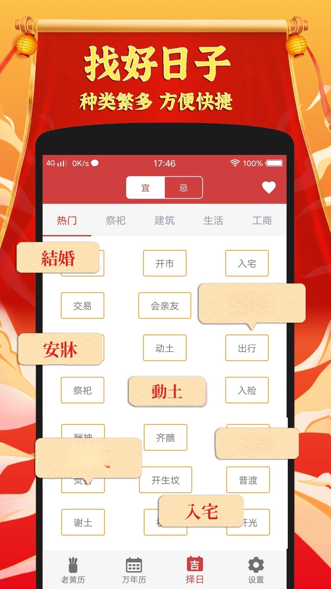 4、传统黄历宜忌