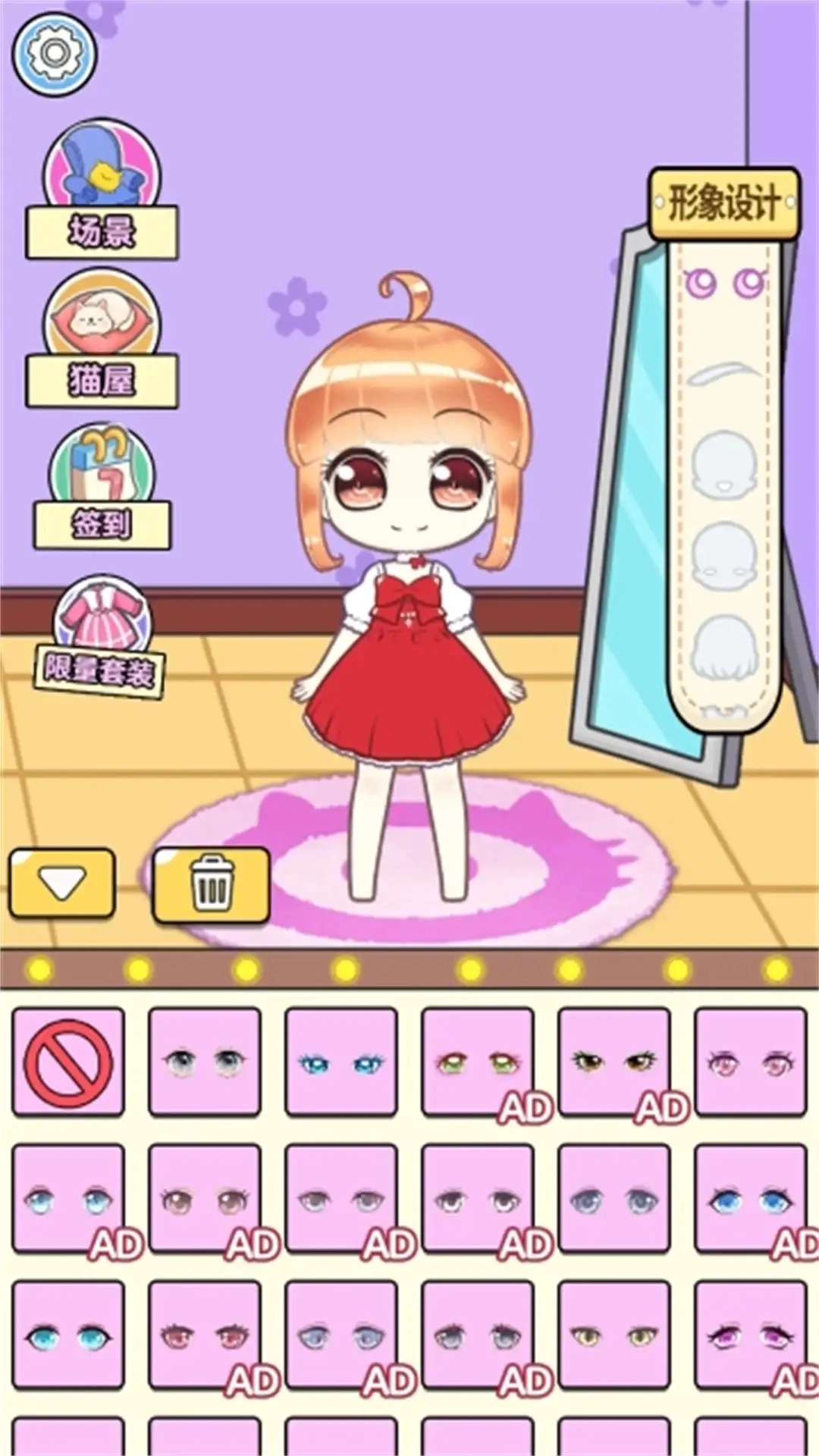 游戏采用精致的卡通画风,玩家能够真实体验试穿各类服饰,并从中挑选出更契合主题的服装与饰品搭配方案。