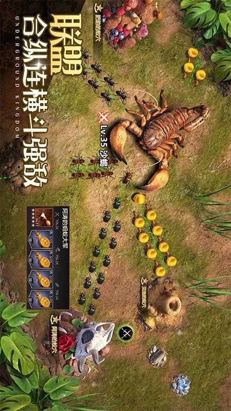 蚁巢里藏着好多生存必需的资源,你扮演蚁后,指挥工蚁挖蚁道,能找到天然泉眼、上等玉露、鼠妇扎堆的地方……给蚁巢提供稳定的食物来源;还能碰到湿乎乎的泥潭、掉下来的流沙之类的,这些都是补巢穴少不了的资源!探索地下世界,白手起家建你的蚁国!