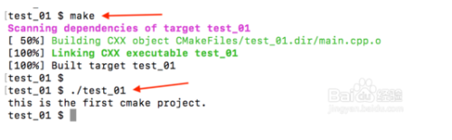 7.最后终端执行make命令生成可执行程序,然后运行可执行程序,从下图的运行结果看,可执行程序运行成功。