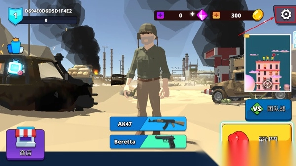 1、第一步,打开战斗士兵多边形游戏。进入游戏后,点击右上角的齿轮按钮。