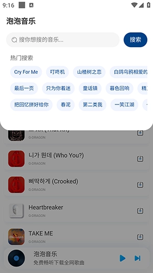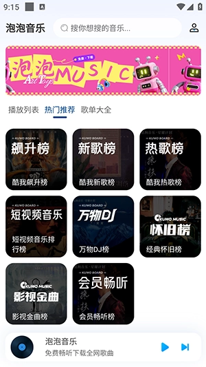 泡泡音乐APP,堪称听歌神器,完全免费使用。它整合了全网多个平台的曲库,具备排行榜、热门推荐以及搜索等实用功能。在这里,无需开通会员,也不会遭遇广告干扰,既能免费听歌,还能免费下载歌曲。这是一款极为纯净、小巧,然而功能却十分齐全的听歌神器。