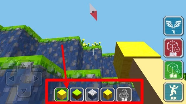 2.下方方块栏可自由切换不同方块素材,点击后可直接用于建造,便于快速搭建各种结构与场景元素。