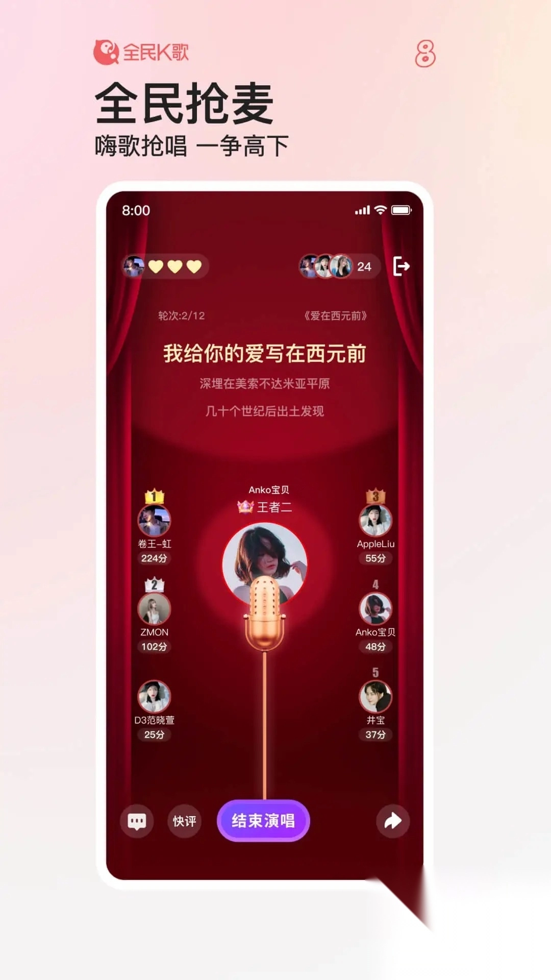 朋友挑战赛:k歌唱配乐,争夺冠军。强者就是喜欢这样交流!
