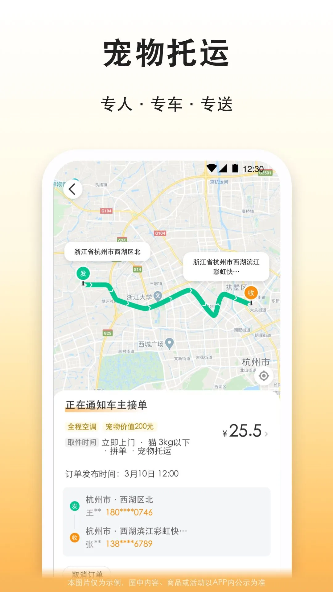 3、除顺风车服务外,还具备打车、送宠物、急件这三个功能。