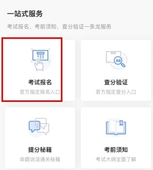 3、于考试专区界面,点击“考试报名”功能按键,从而进入报名流程。