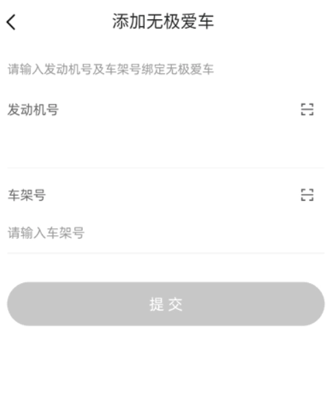 4、接下来,用户仅需输入发动机号与车架号,随后提交,便能完成绑定。