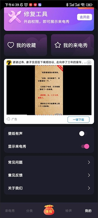 2. 顺着页面向下滑动,找到“开启壁纸有声”选项并点击,就能便捷地设置来电壁纸与声音。
