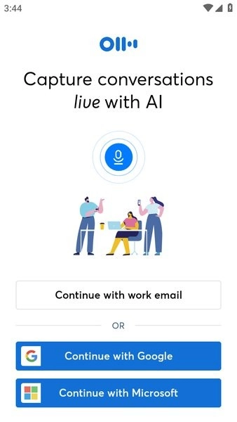 打开otter软件,登录方式有两种,一是使用账号登录,二是通过Google、Microsoft账号登录。
