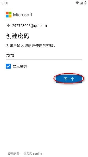 请输入密码,务必牢记密码,然后点击“下一个”。