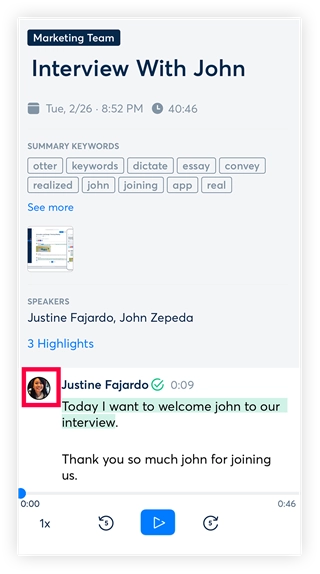 ③你能够修改扬声器的名称,点击人员图标来修改姓名,针对 Otter 用户,还能够链接用户。