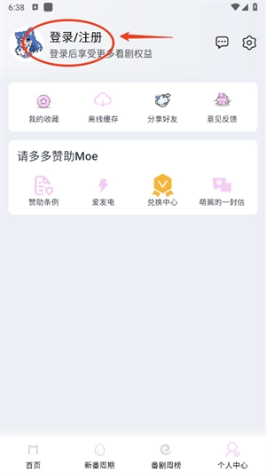 1. 轻点右下角的个人中心,接着点击登录/注册。