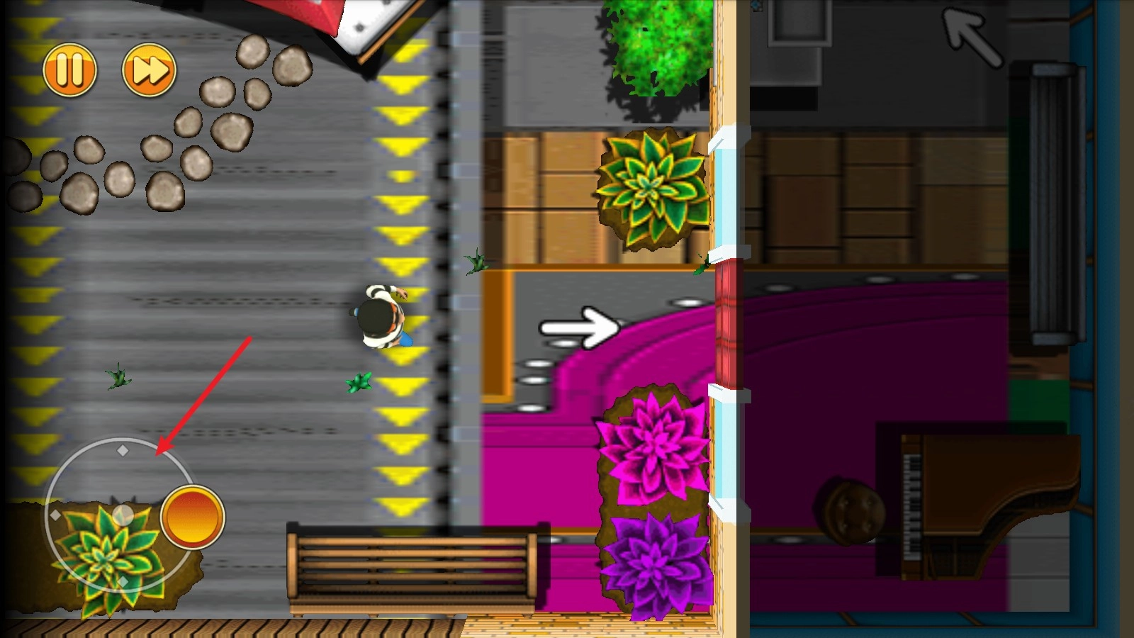 5、右侧的按钮能助你实现加速操作,然而这一过程会产生噪音,致使你极易被发现。