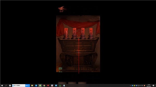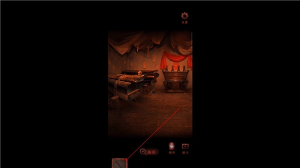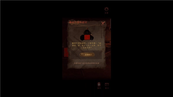 6、然后前往灵堂隔间,在这里有段视频,看完会发现一个密道,使用手帕擦拭墙面。