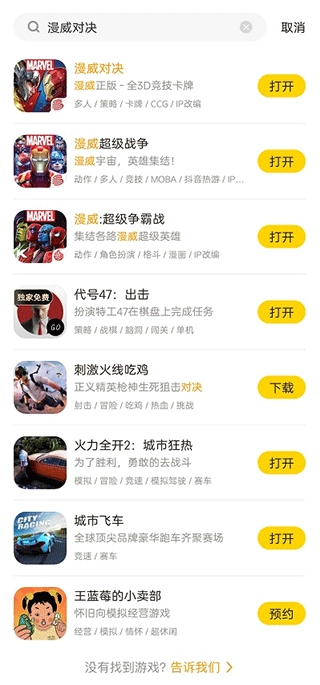 3、当然,如果玩家想要玩某款游戏,直接在上方搜索框中输入并搜索,搜索后便会弹出搜索结果。