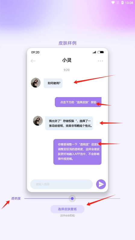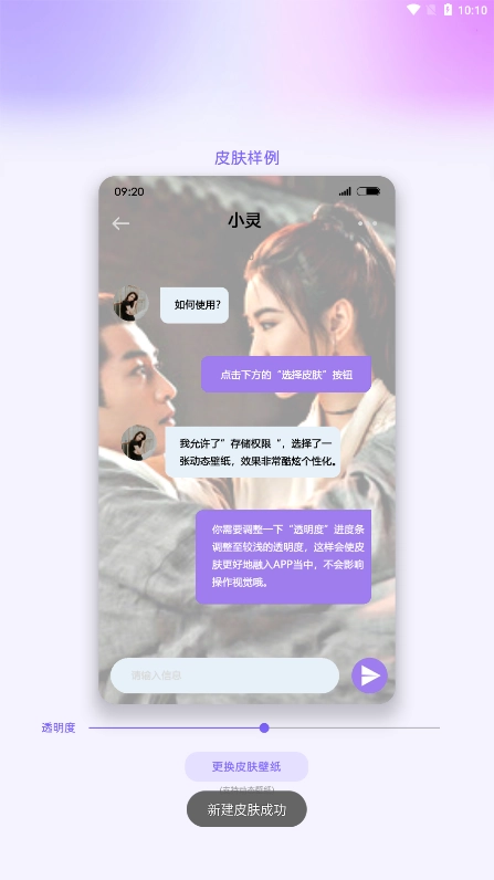 在任意App的界面上,都能添加图片或视频皮肤。你可以把男女朋友、idol、宝宝的视频制作成皮肤,一键融入到界面当中,时刻与他们相伴。