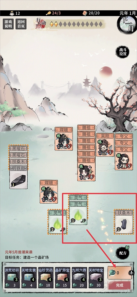 11. 御仙斋:人物1、太玄石2、百炼钢1、黑曜石2、行动点3