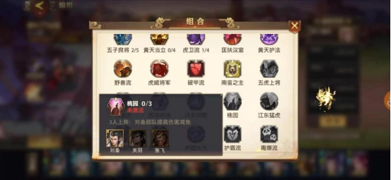 核心武将为:关羽、张飞、赵云、黄忠、马超。可触发强大的五虎羁绊效果。