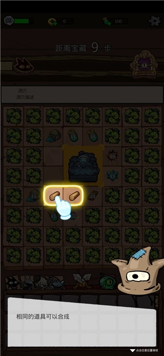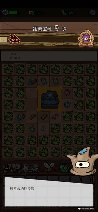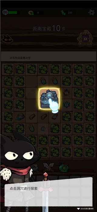 1. 开启游戏后,点击地图中的洞穴展开探索,每次探索均会弹出额外道具。