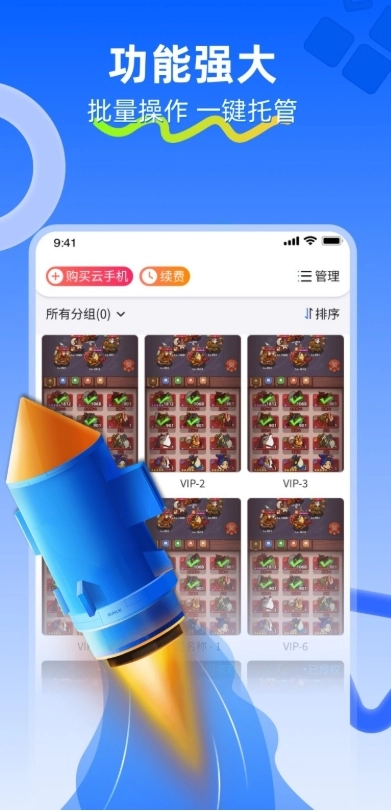 1. 具备一台手机操控多台云手机的功能,同时支持多台云手机同屏预览与同步操作。