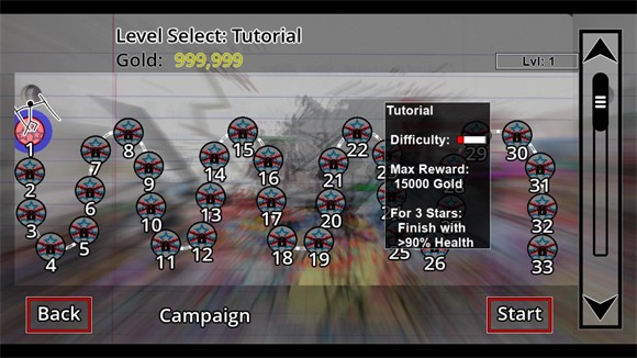 2、点击“start”后,会进入关卡选择界面。在此界面中,挑选您想要游玩的关卡,接着点击右下角的“start”即可开始。