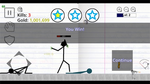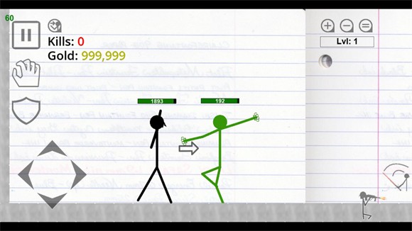 4、正式开始后,通过操控左边来控制角色移动,只需在屏幕上移动手指,就能操控火柴人的双手展开攻击。