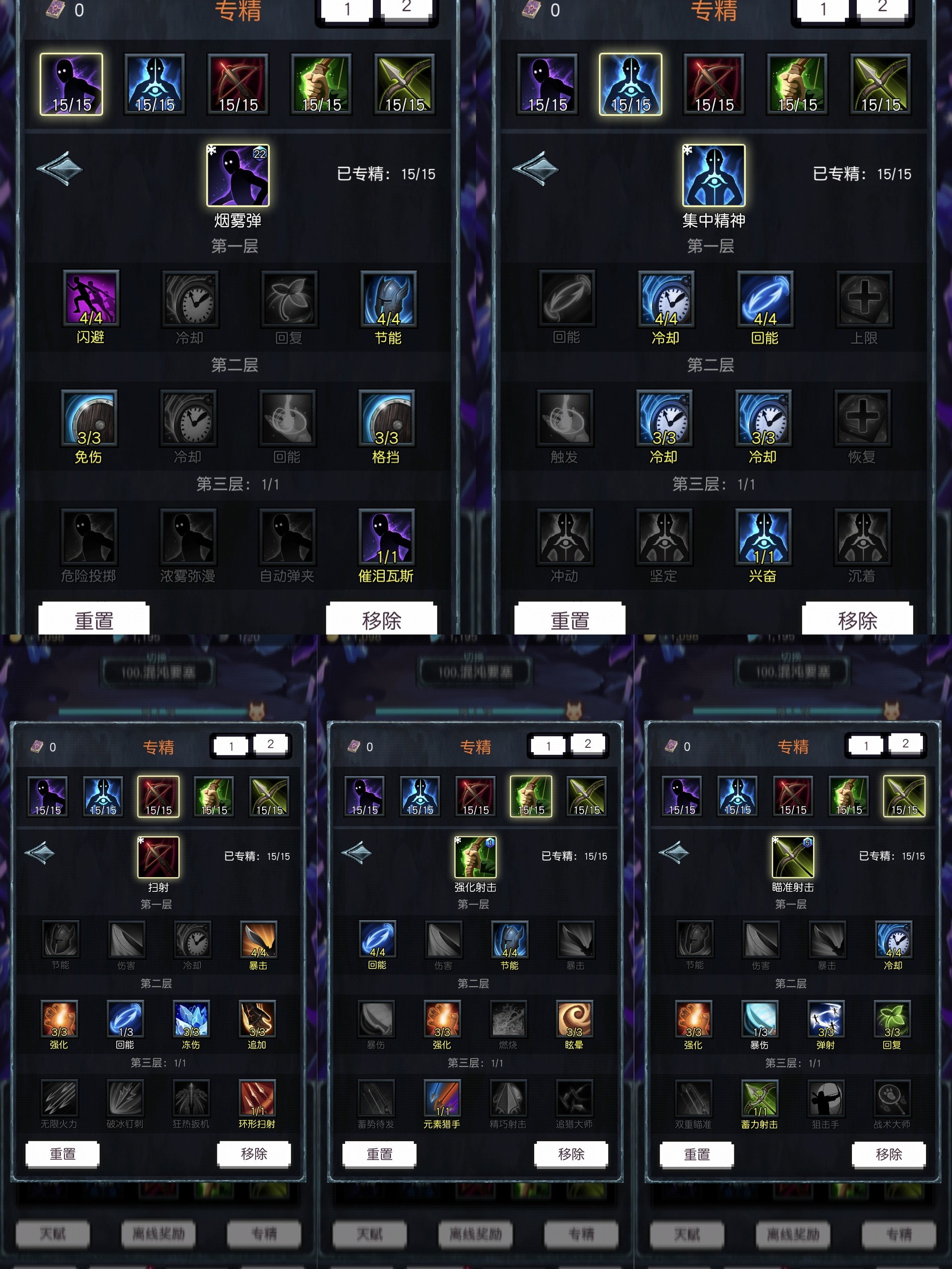 1、首先讲讲前期思路,保命是首要的,输出其次。多闯几关来获取专精点,就算伤害像刮痧一样也没关系,只要能通关就行。要确保蓝量充足,不然伤害会更低,要是蓝不够,就点减少蓝耗的技能。