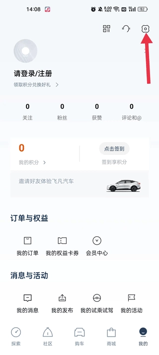 1、点击我的,进入飞凡汽车选择我的点击进入