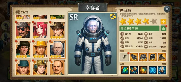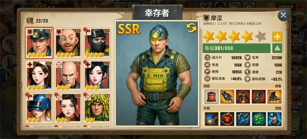 新手挑选幸存者时,优先选择星级较高的,无需一味执着于SSR。该游戏的特色在于,一星能解锁两个技能,两星可解锁四个技能,三星则能够觉醒。