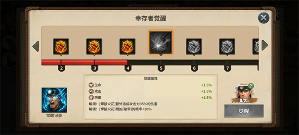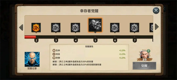 需要补充说明的是,幸存者主界面的技能若要升级至三级,需满足三星的要求。
