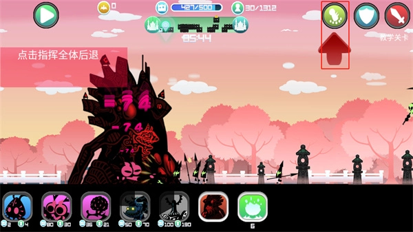 点击右上角的红色的按钮来指挥全体进攻;