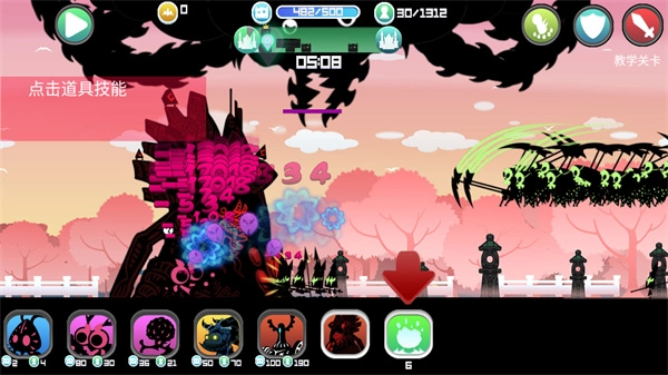 点击游戏下方的绿色道具可以释放技能;