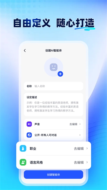 想要拥有一个完全契合你需求的智能伙伴?创建页面配备了简便易用的智能体定制工具,助你随心打造专属智能体,还能自由定义它的个性与功能。