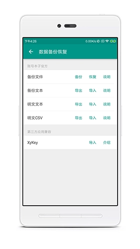 该功能支持创建数据备份文件,可通过合并方式恢复数据,也能选择清空原有内容后进行还原,同时提供备份文件的加密保护机制。