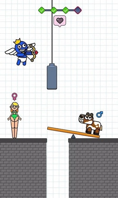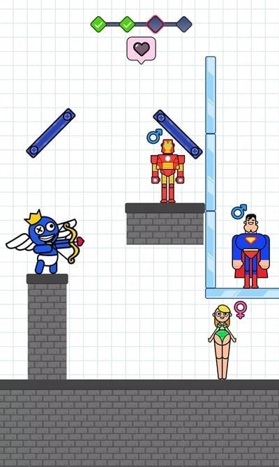 爱弓箭手是一款休闲闯关类游戏,游戏为玩家提供了海量的关卡挑战,每个关卡中的人物形象与场景布置都各具特色。在游戏里,玩家将化身为爱神,任务是用弓箭分别射中男生和女生,因此在瞄准射击时,需要留意角色头顶的性别符号。无论是动物人还是狗,只要其性别符合要求,玩家都可以对其进行射击,并且能够成功命中,所以玩家在游戏过程中可以看到许多趣味十足且十分搞怪的动画效果。