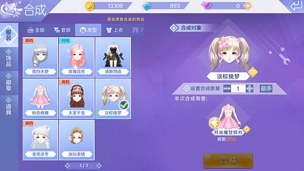 在工坊进行服饰合成时,这里也藏着几款值得入手的发型,像银白天使和淡棕晚梦就十分精致,搭配各类服饰都很和谐。服饰合成需要对应的服饰碎片,其获取难度和服饰打造不相上下,想要收集齐全的玩家得下点功夫才行。