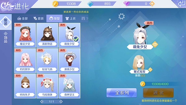 工坊的服饰进化系统里包含不少发型,玩家需要收集3个一模一样的发型,才能将其进化为带有光效的高档发型。其中萌兔少女和森林女王这两款发型十分值得收集,点击发型就能查看具体的获取方式,不过收集过程同样存在一定难度。