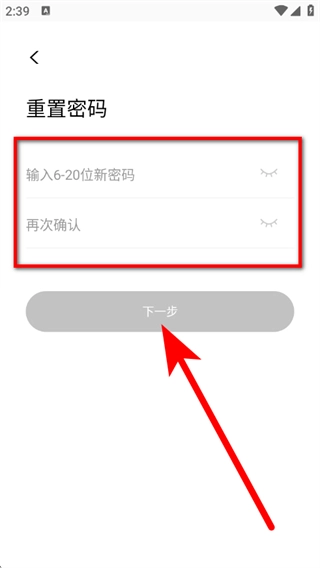 在重置密码页面输入新密码后,点击“下一步”按钮,即可进入忘记密码页面。