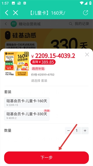 选定目标套装后,点击【下一步】按钮,即可完成商品购买流程。