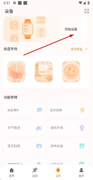 在首页点击底部设备,进入设备页面。