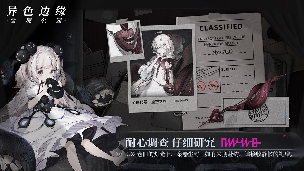 异色边缘游戏以黑白灰色调为基底,融入带有“新怪谈”元素的二次元日漫画风,同时结合手绘、折纸等艺术风格,使玩家能切实感受到一种浓厚且弥漫着诡谲氛围的异界厚重感。游戏的每个章节关卡都配备专属的CG剧情,通过这些剧情对话,我们不仅能更深入地认识这个世界,熟悉身边的伙伴,还能清晰地把握剧情内容的推进脉络。