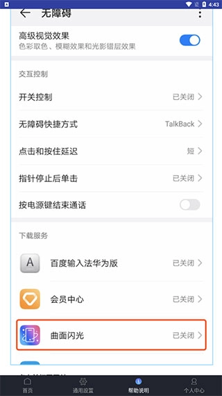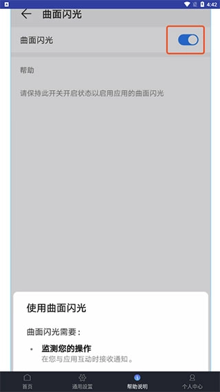 打开“曲面闪光”的开关,接着点击“确定”,这样就完成设置了。