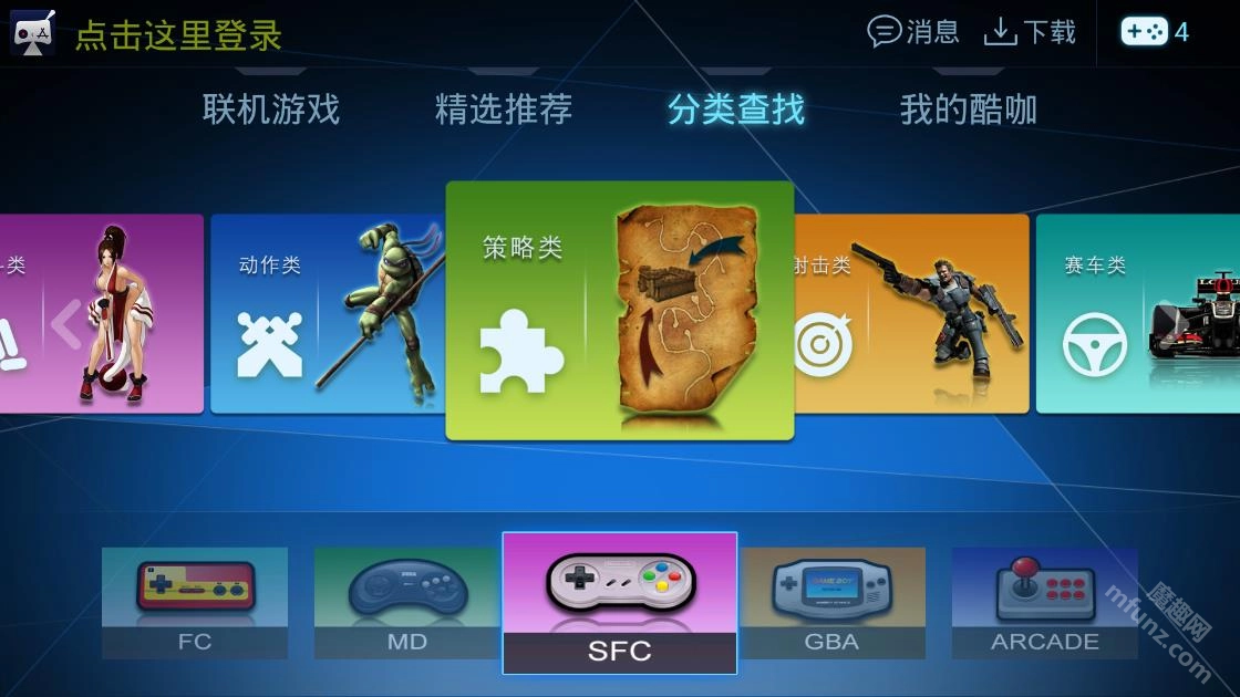 海量经典游戏:提供街机游戏、FC游戏、MD游戏、SFC游戏等,涵盖多种类型如射击、格斗、动作等,支持一键、无限畅玩。